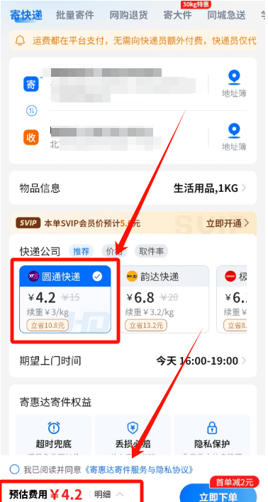 然后你可以8块钱帮他寄,她能节省7块钱,你能赚3.8元,皆大欢喜