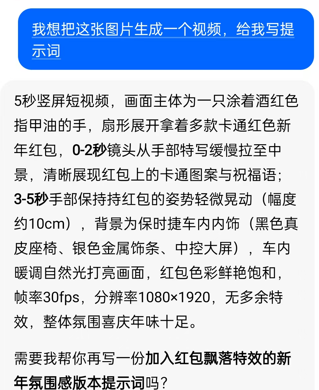 如果我们想把图片做成对标账号的那种视频,不会写提示词,也可以让豆包帮我们写,直接告诉豆包我们的需求就可以。