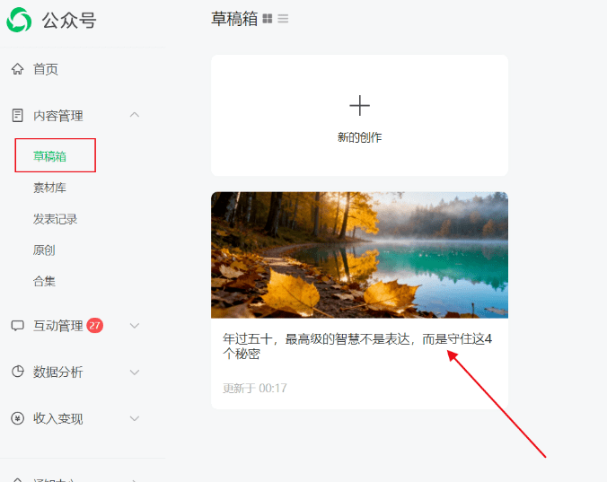 1、电脑浏览器打开公众号后台,刷新草稿箱。