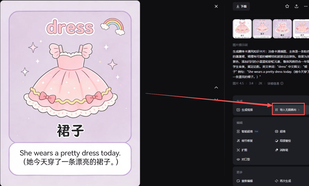 也很简单,直接点击你想保存的图片,选择去无限画布