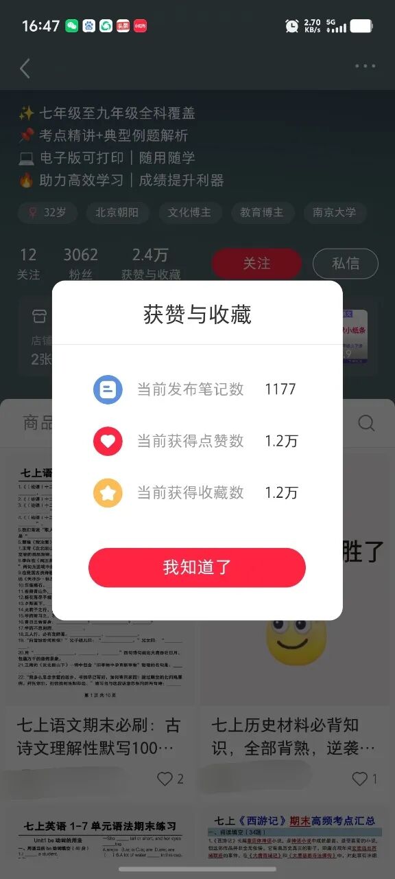 这个账号一共发了1177篇,点赞量和收藏量都有1.2万。