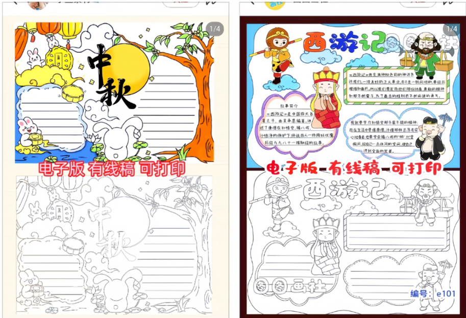 其实道理很简单,就四个字:刚需+痛点。如今,家长们对孩子的教育愈发重视,对于老师布置的作业,自然不敢有丝毫马虎。但手抄报这种作业形式,对于那些不擅长画画的人来说,简直就是一场噩梦。而我们售卖的是黑白线稿版手抄报——家长只需将其打印出来,让孩子自己动手涂色填字,这样既完成了作业,又锻炼了孩子的动手能力,完美地解决了家长们的难题。