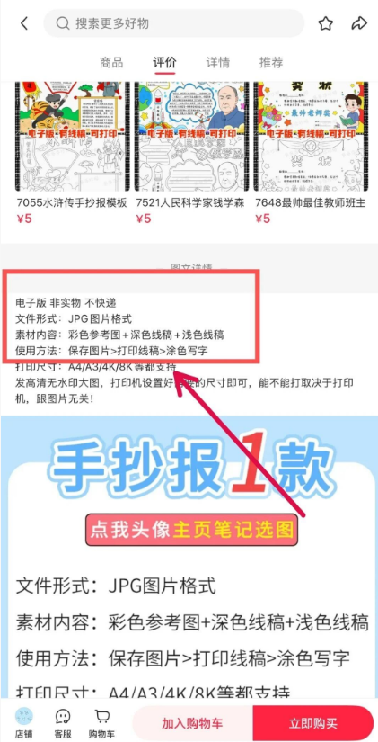 而且,这属于虚拟资源商品,根本不需要进行真实的发货操作。一旦有买家下单,只需直接把高清手抄报的图片发给对方,买家就能自行去复印社打印。
