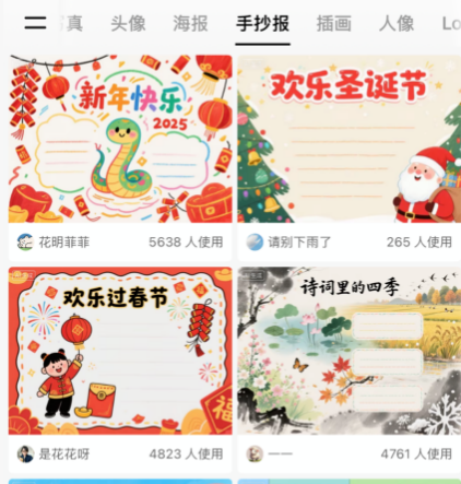 打开豆包APP,找到创作板块,顶部导航栏有个”手抄报”分类,点进去就是一堆现成模板,在里面挑个你喜欢的款式,点击“做同款”。
