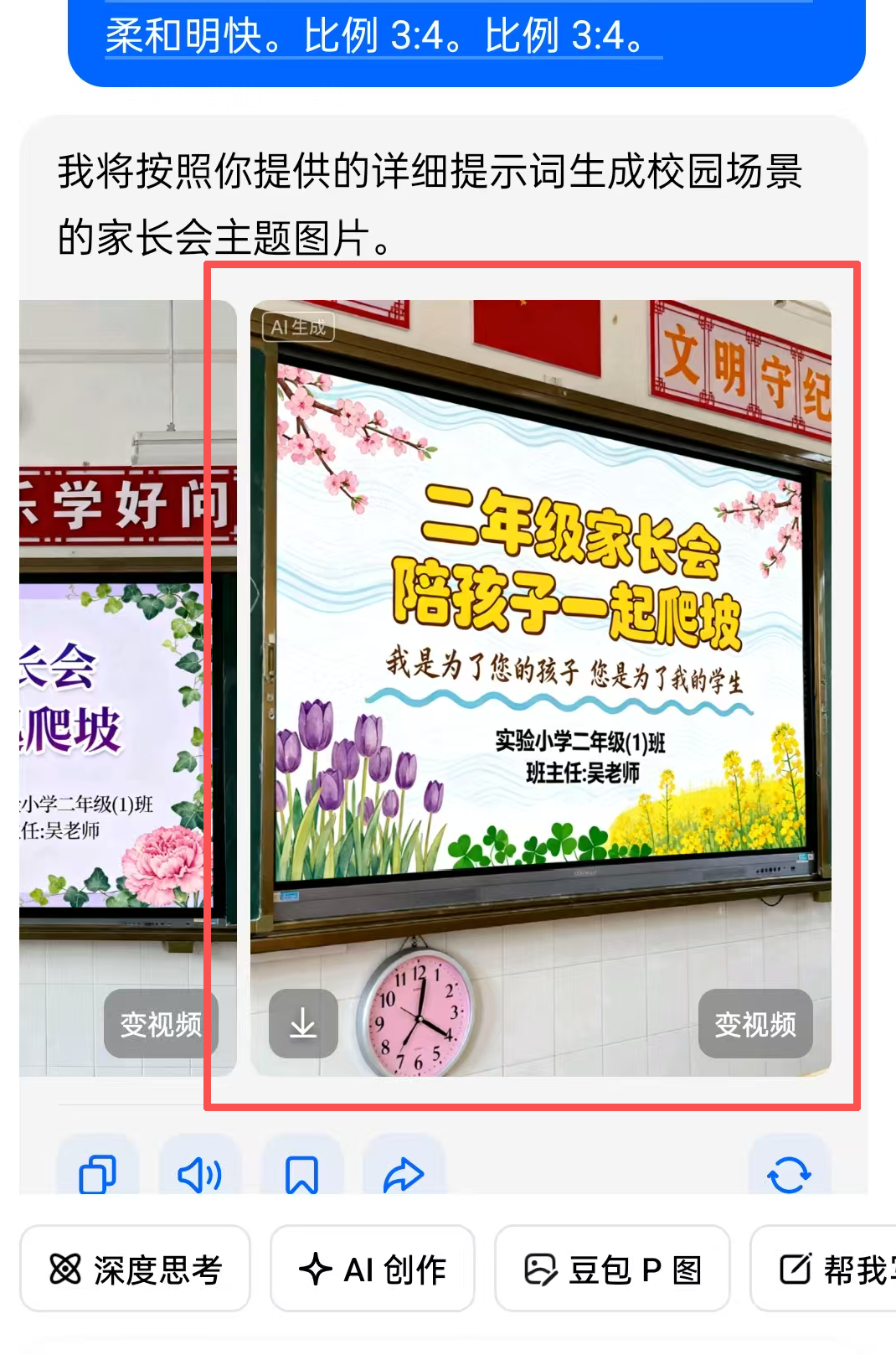 不过你可能会发现,图上多了一块钟表。没关系,直接告诉豆包:“去掉钟表”,它马上就能给你修正。
