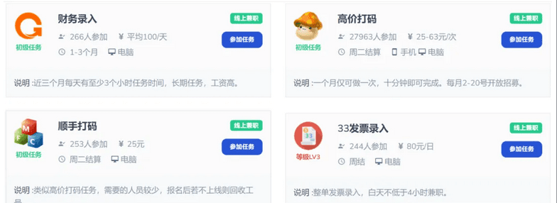 而且这类的平台也很多,也要学会分辨,一般是腾讯的搜活帮,还有录入B等等,做这类平台要注意,有些费时间不说单价还低,而且有压金的一定不要去做,防止马扁
