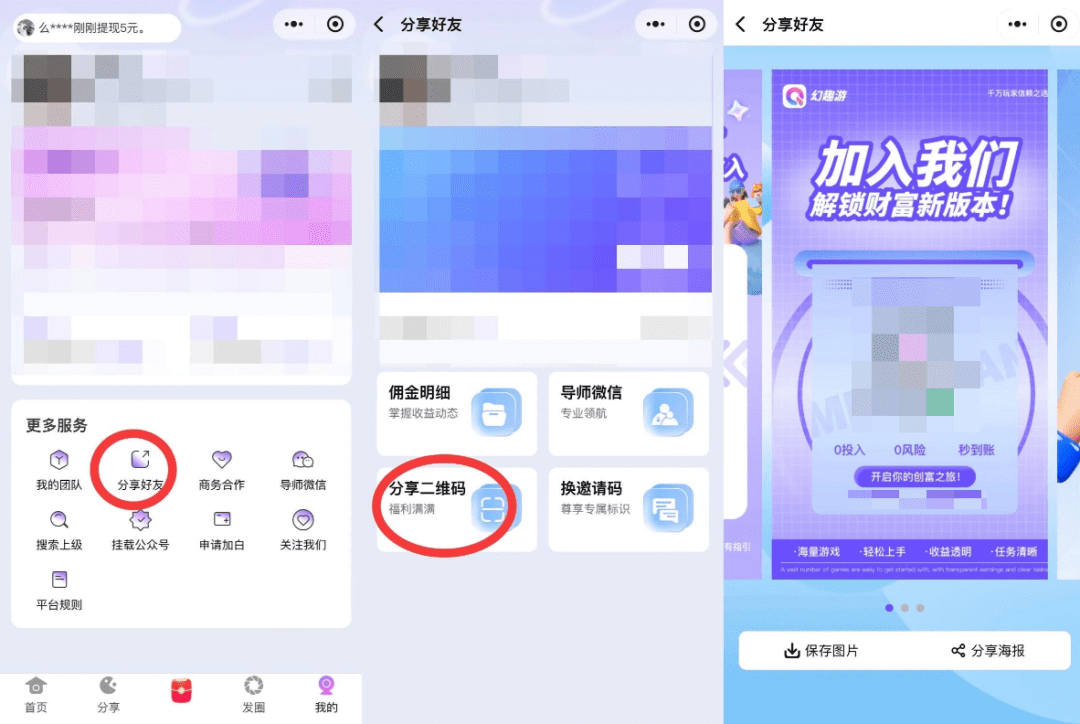 只有有人通过分享登录链接或者海报进入玩游戏,就可以获得持续的分享收益。