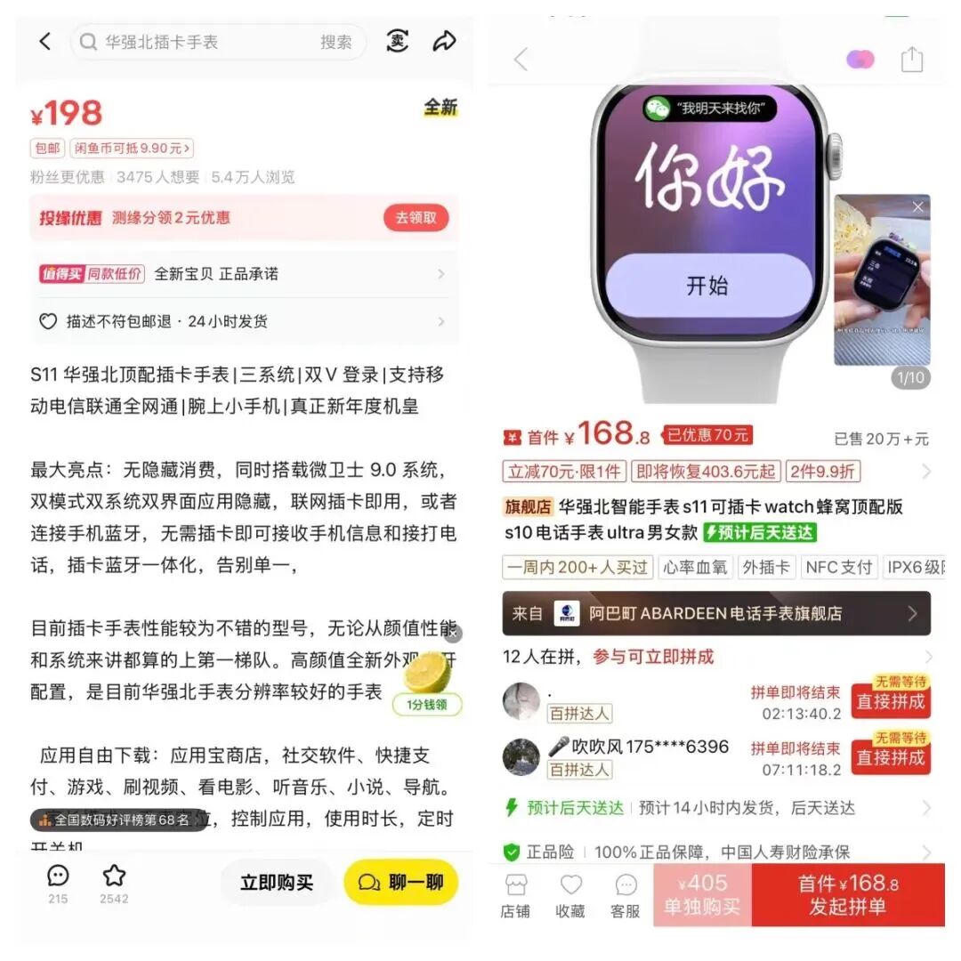 (1)选品:首先我们直接去闲鱼搜索“华强北手表”,就会发现很多卖的好的同行,销量好的甚至一个链接就能达到几千单的数量,他们一般的价格区间实在80-200元之间,这个价格很多家长都能接受。