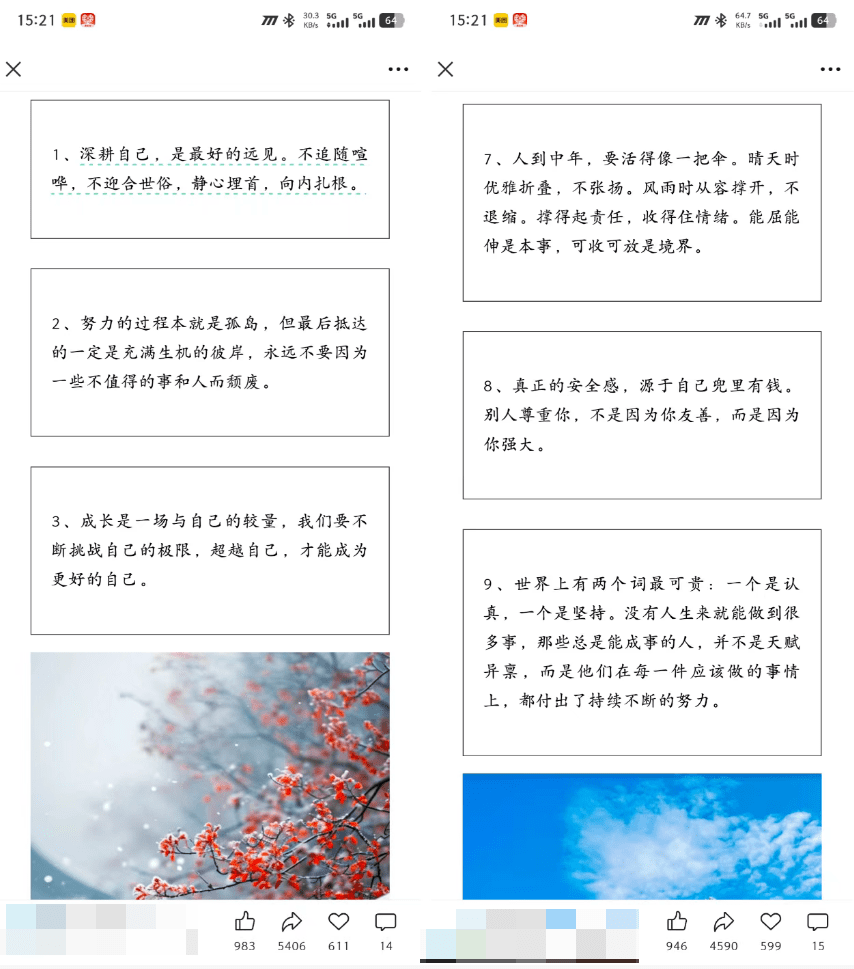 把从小红书上面寻找并整理好的金句,简单排版一下,然后用ai生成几张风景图,就搞定了。