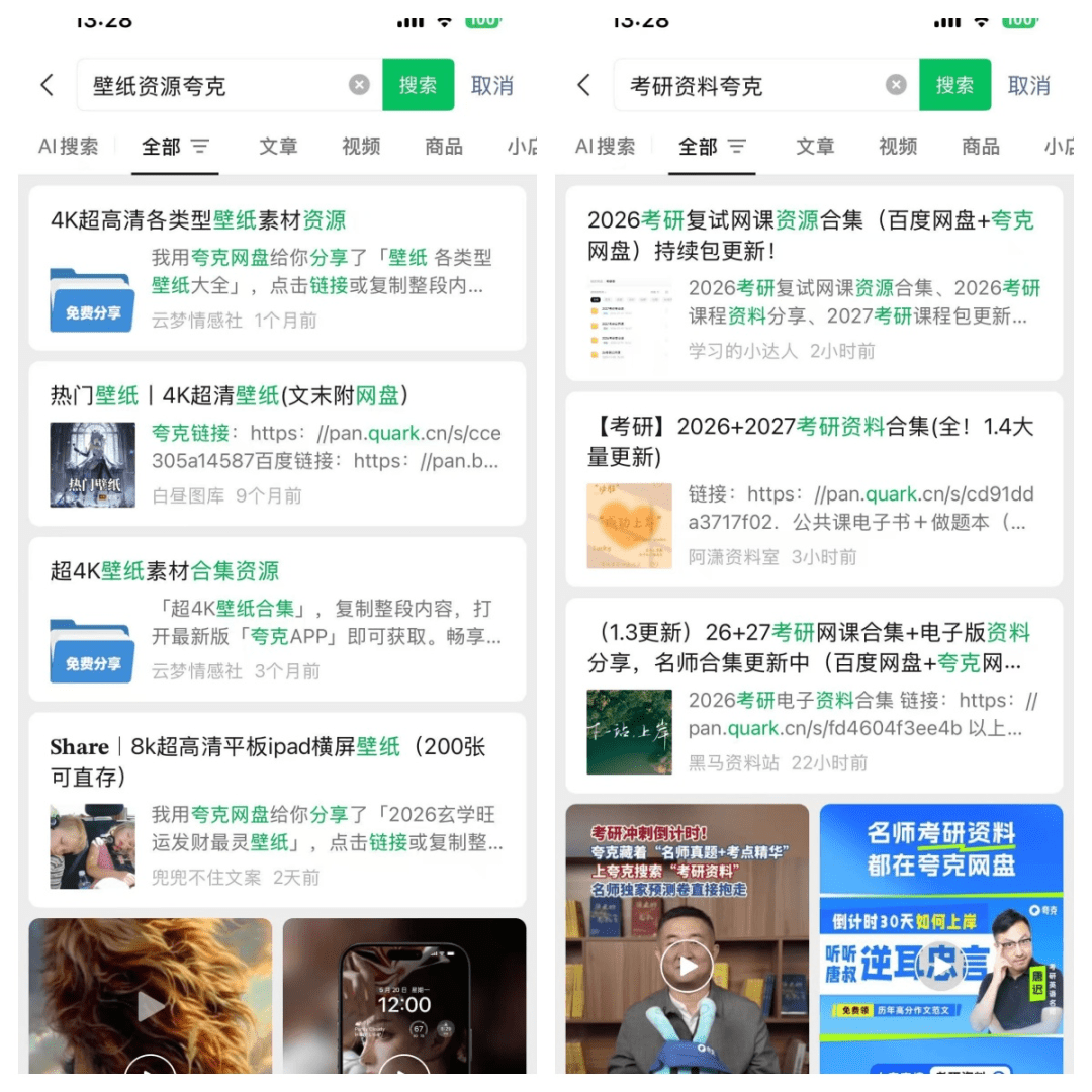 用户看到后直接转存,我们就有收益,不用像抖音那样弄各种口令,让用户去夸克搜关键词,比较麻烦,推广步骤越多,效果越打折扣。