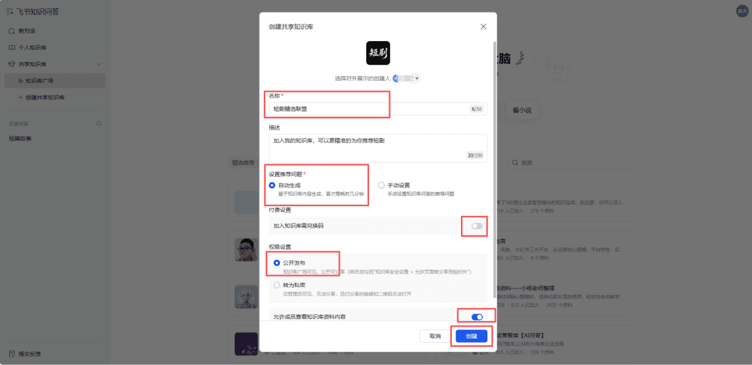 第二步:注册登录后,找找“共享知识库”这个功能,创建一个新的。