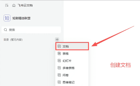 跳转到新页面以后,点击创建文档,
