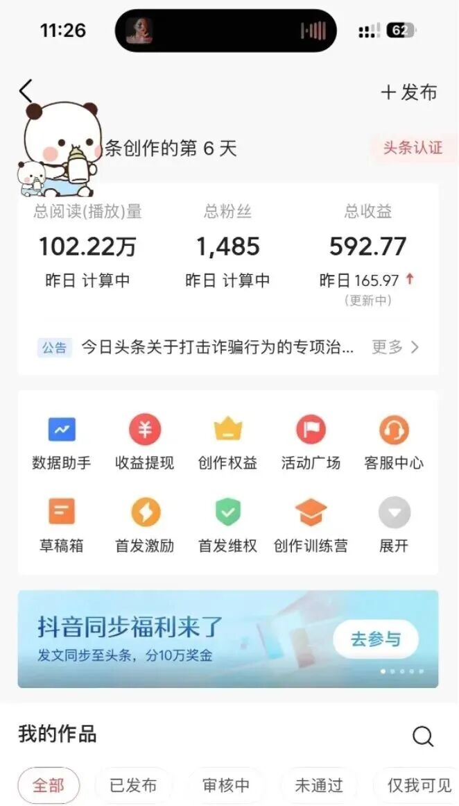 同时老粉都了解,我这边是专做头条抄书,视频号分成,小红书商单变现,ai小店带货,以及无人直播等等都是最新的副业