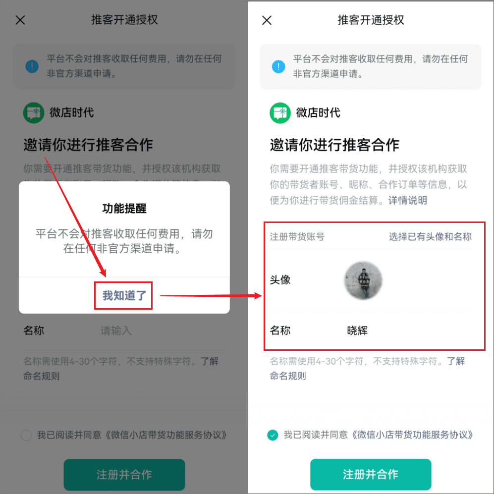点击“我知道了”,设置好头像、名称即可,如下图。(如果提示名称已被占用,就换一个名称)
