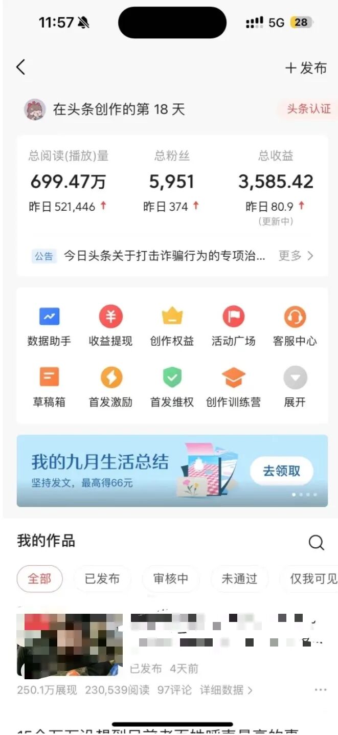 现在也有新的玩法。直接用ai改写文章,然后发,速度快,原创高,一个月賺个几千不是问题