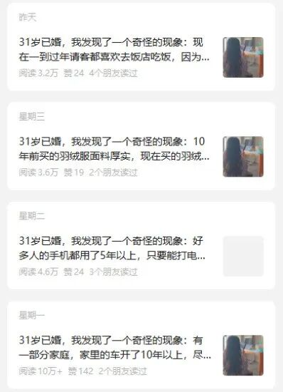 这种定位看起来是定了两个小范围的人群,但内容其实比较广泛,也不一定全部都围绕女性去写,其实还可以广泛延伸,比如选题可以是请客吃饭、买衣服、换手机、婚姻、借钱、学历等等。