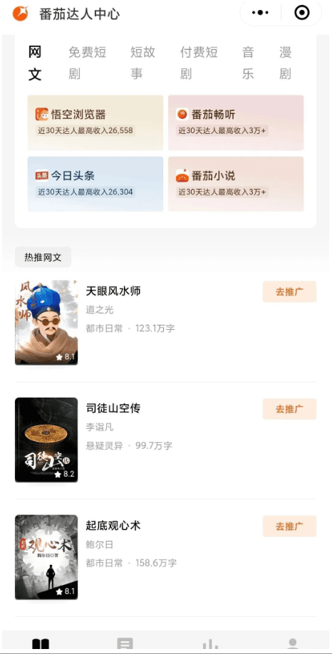 主要的玩法就是把小说的精彩部分制作成图文或者视频发到短视频平台,有人去看了你这边就有拥金,玩法很简单就是要多发作品,多做账号。
