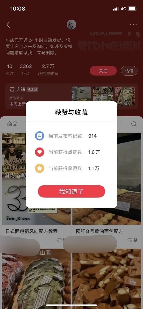 这个账号,粉丝一共3362个,发了914篇笔记,每发一个笔记,就上架一个产品链接。