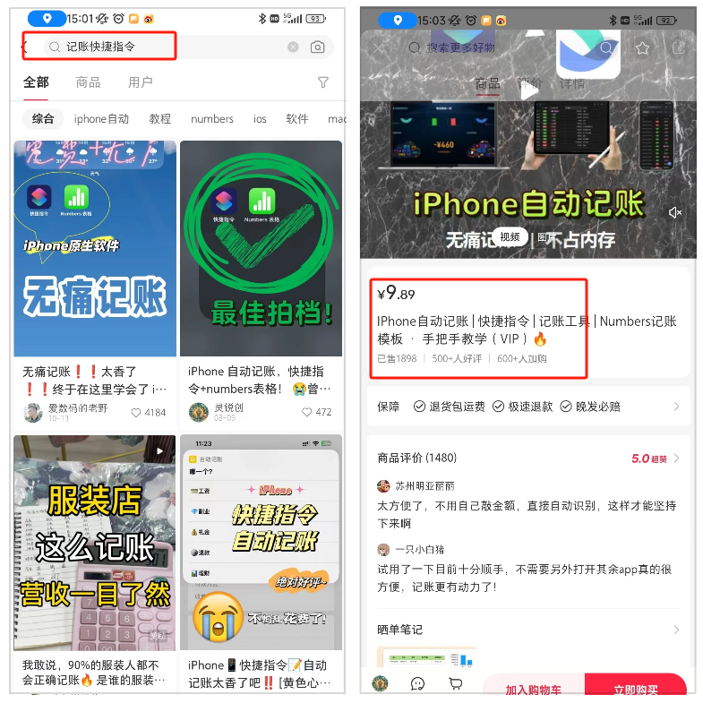 你看,上面这个也是卖记账工具的,小红书一搜就能找到。人家价格卖得低,一单9.89,但也卖了1898单,赚了将近18771!