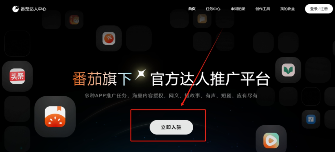 打开番茄达人网站,填资料,提交申请,入驻so easy!
