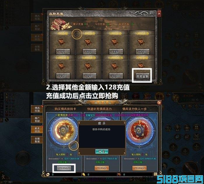 在游戏的福利大厅中,玩家可以领取到微芯礼包,增加初期的资源。然后,通过佣兵系统,玩家可以购置不同星级的佣兵,蕞基础的佣兵购置价格为128圆,系统会自动激活佣兵。