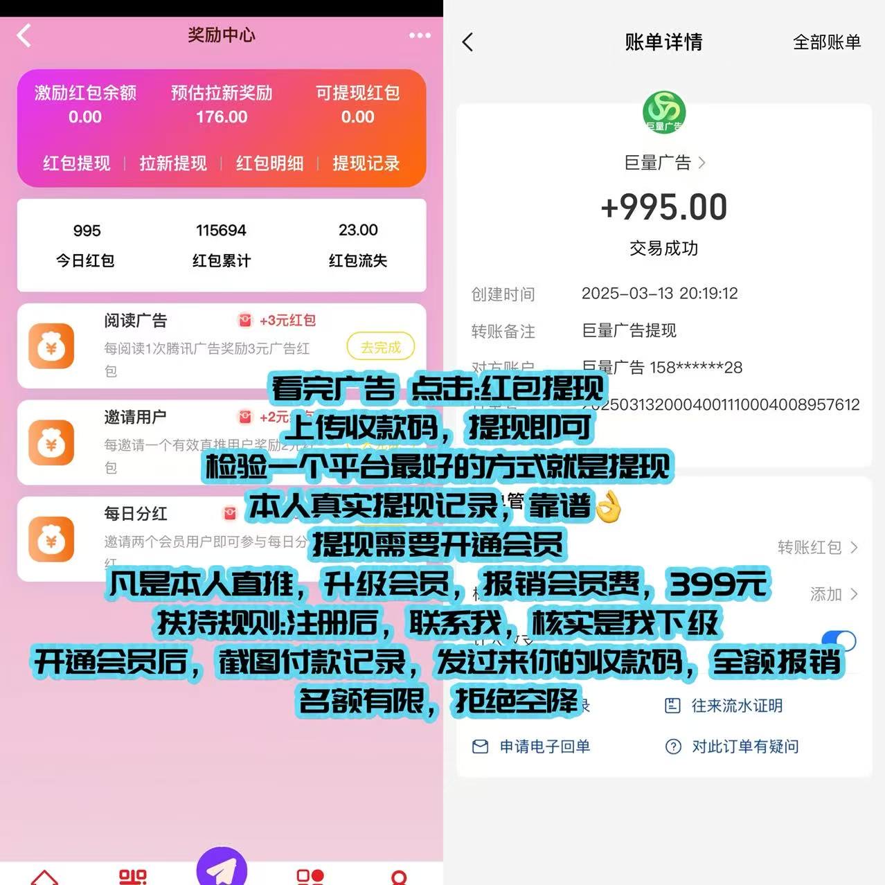 这个平台的亮点在于,每条广告都能带来3元的奖励,而且观看广告后的收益可以即时提现,无需等待,这对于宝妈、学生和上班族来说都是一个不错的选择。
