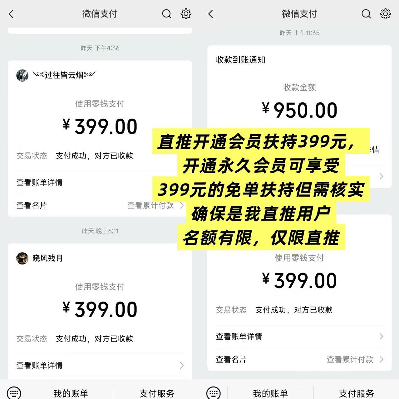 直推升级会员扶持399元,开通永久会员可享受399元的免单扶持,但需核实推荐人,确保是直推用户。