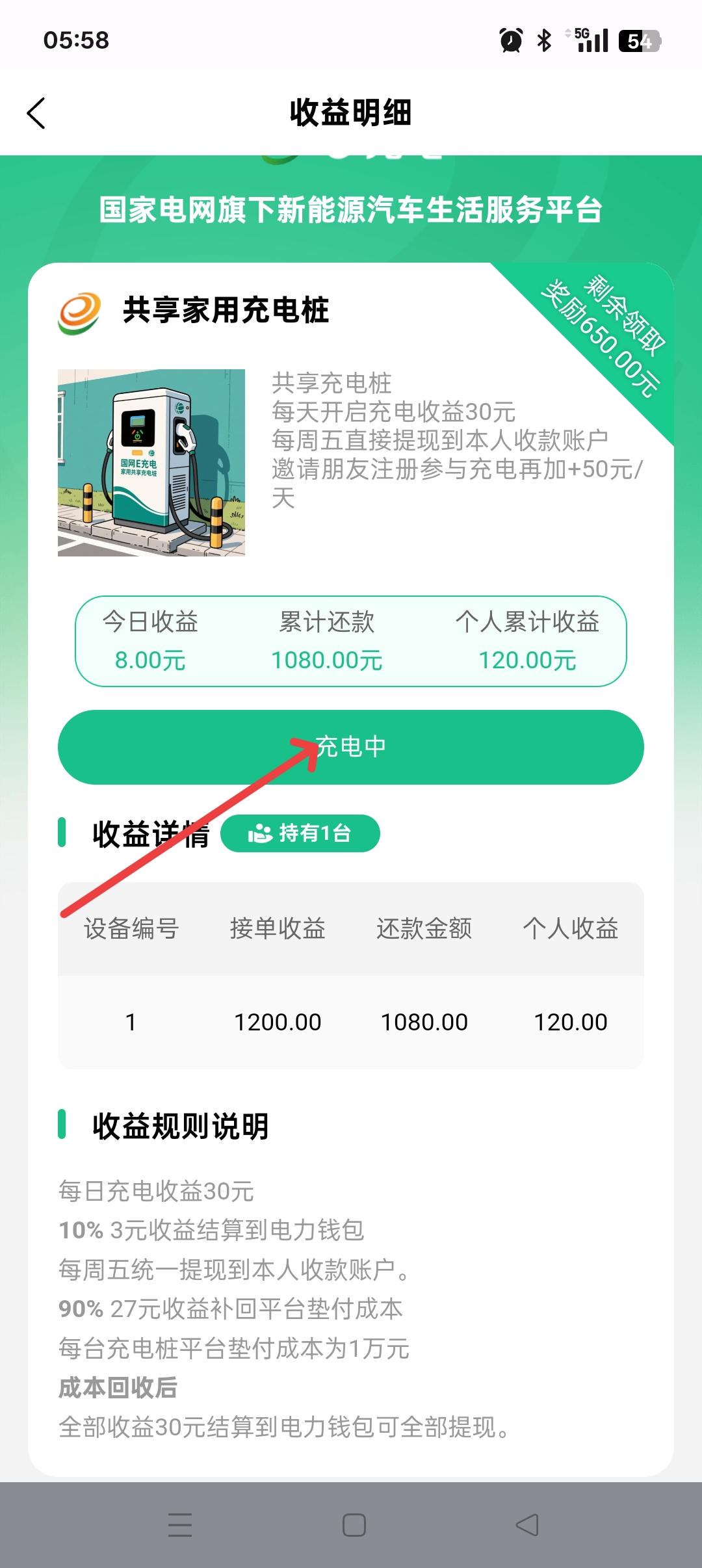 点底部充电桩 点开启