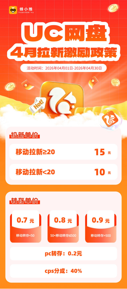 4月,正是UC网盘拉新的好时机,掌握正确方法,就能在UC网盘拉新四月拉新激励政策中分得一杯羹......