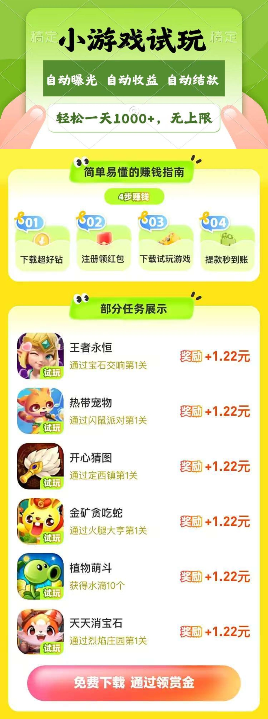 试玩精灵是一款免费的游戏试玩脚苯,非常简单,只需遵循提示实行设置即可使用,脚苯兼容性强,支持市场上的多个试玩平台(例如豆豆赚、大玩家、试玩宝等等),零门槛即可实现全自动掛机试玩游戏搬运了。