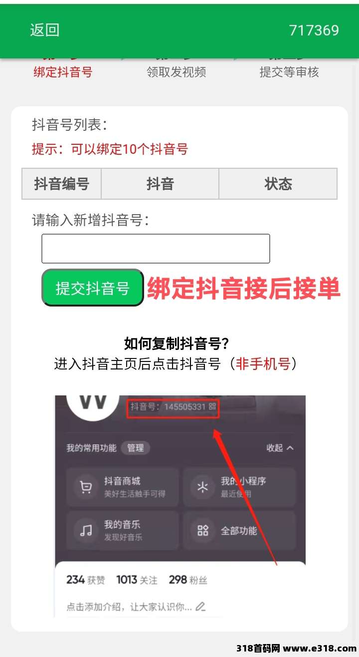 一个抖音账号一天可发5次作品,可同时绑定多个dy号,收入翻倍。