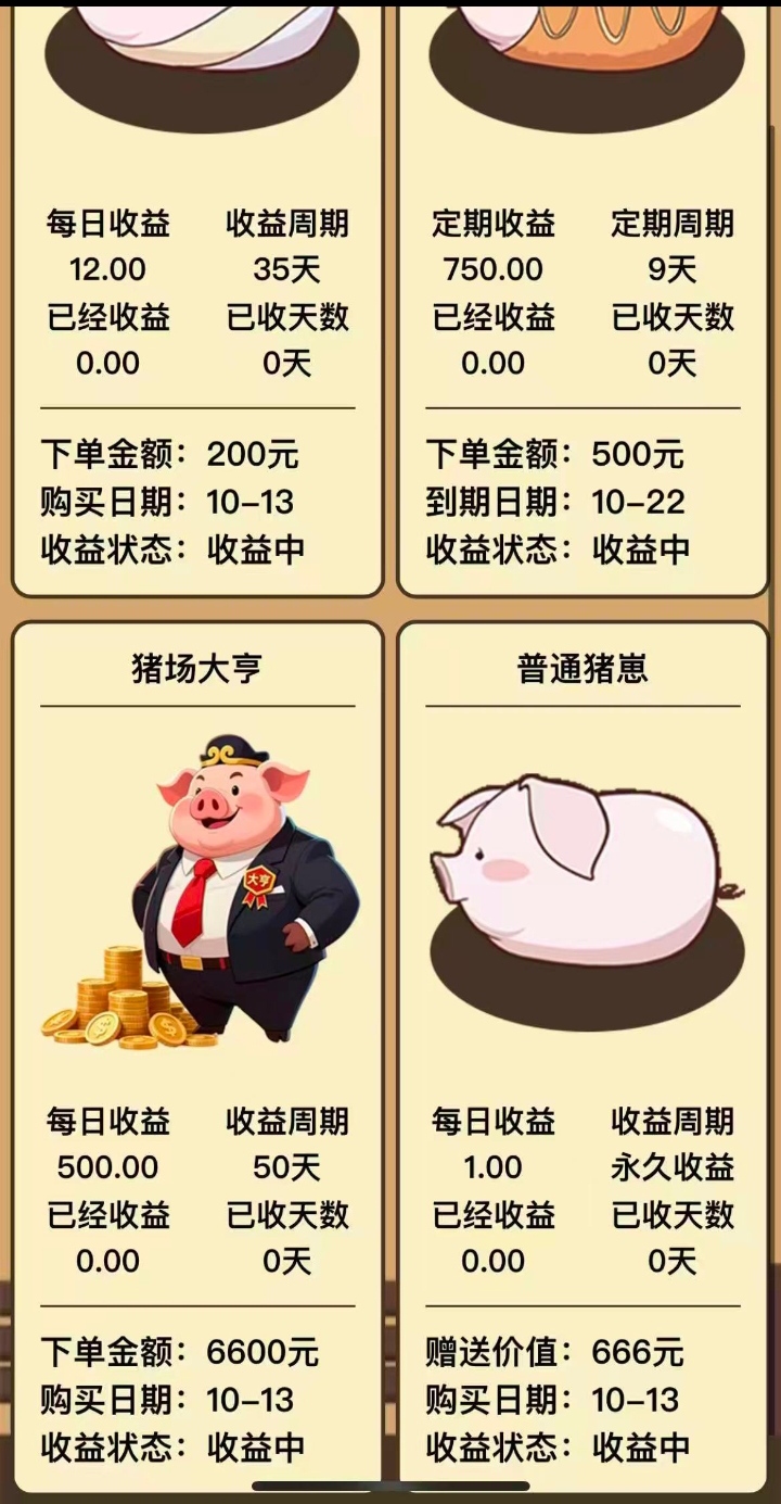养猪大亨每天0点更新,以及发放收益,收益和奖励自动发放到账户,会员只需手动提现即可,非常简单易懂。