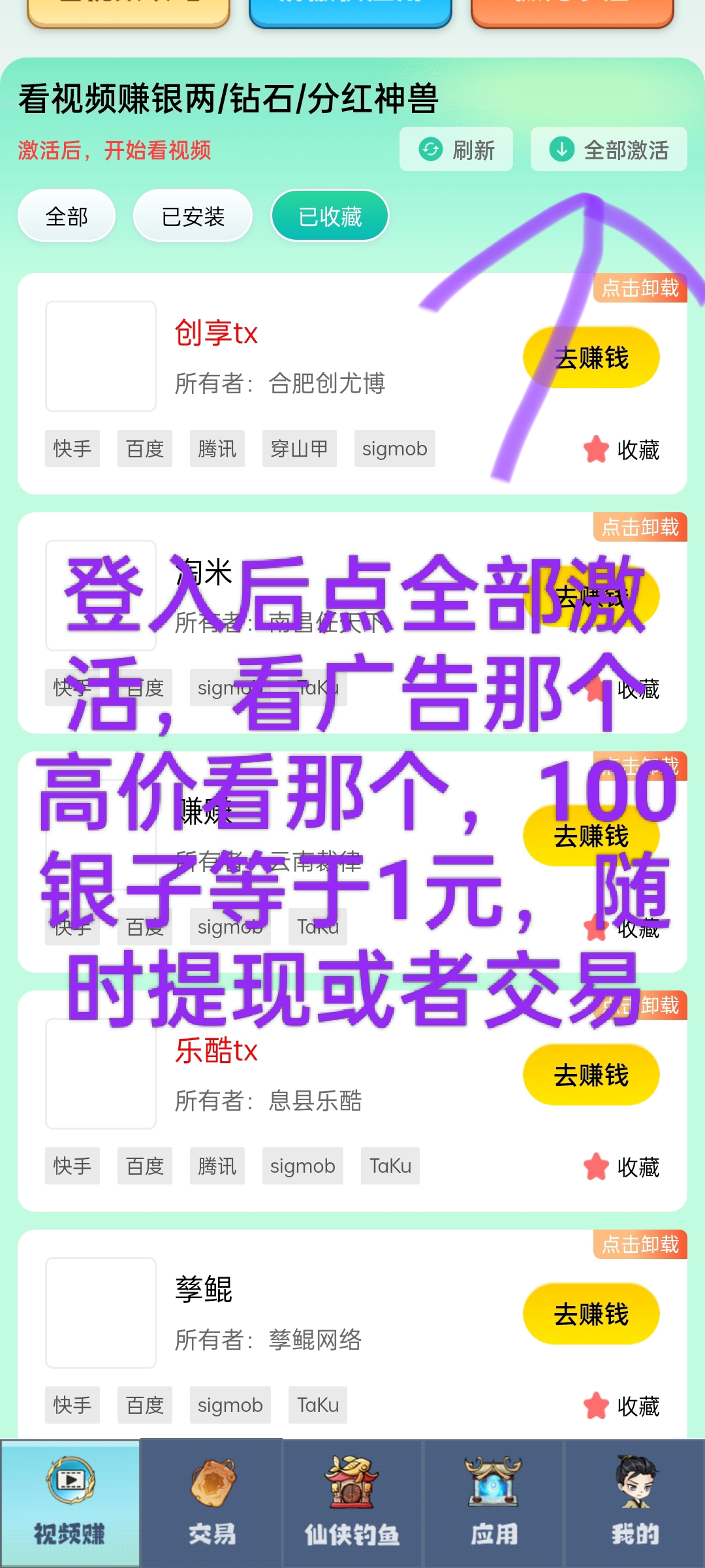 第二,点击看广告,先把[5]全部应用下载,应用很小[1]45mb,然后一个一个[8]去试那个给的银子多看那[8]个,100银子就是一元[项]