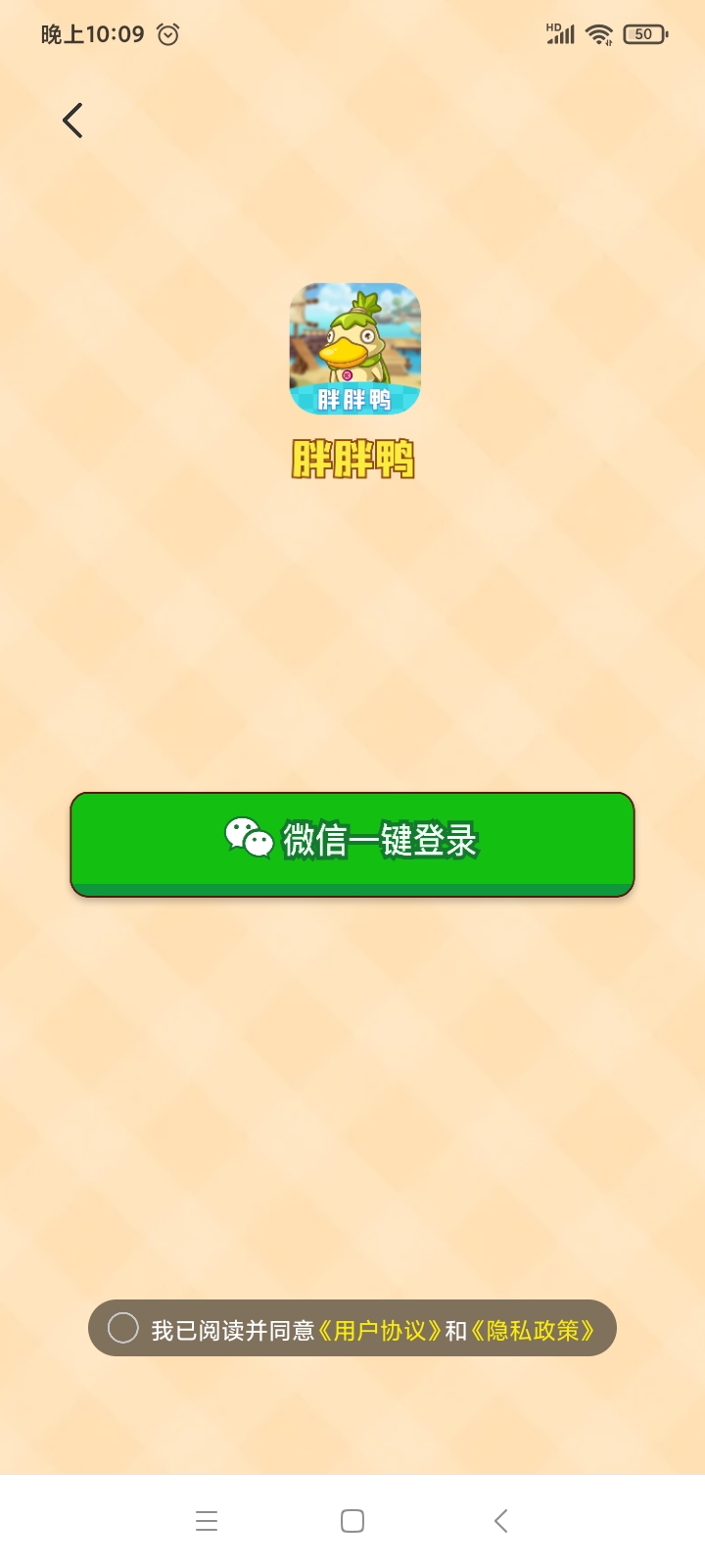 打开胖胖鸭APP,使用微信快速授权登录,系统自动赠送3万金B。金B是平台内部货币,可直接在商城中兑换100只虚拟鸭子,完成首次养殖。