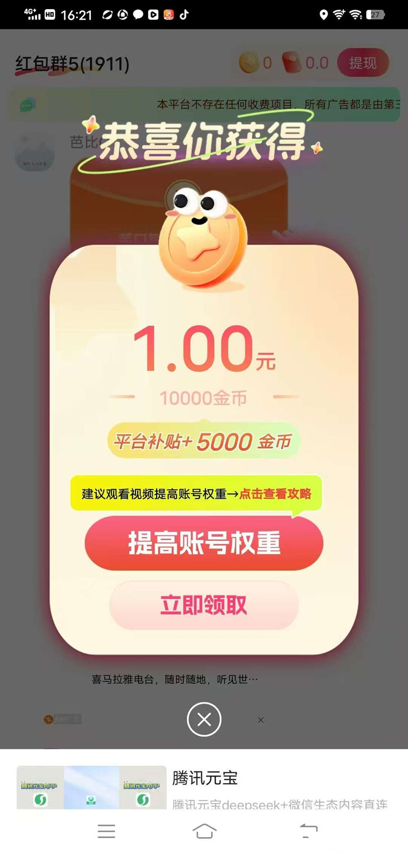 每条广告随机爆金币1000-10000,可直接兑现金;