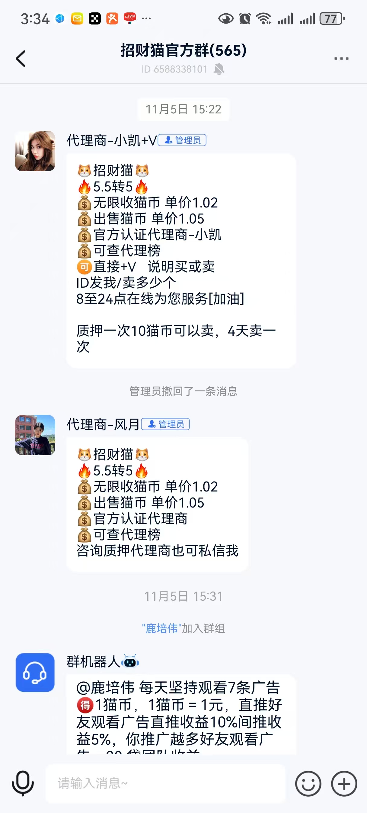 现在普通会员需要质押10猫币成为有效用户才可进行转赠,质押10猫币每天芬虹0.4猫币,观看7条广告每天🉐1猫币=1米!