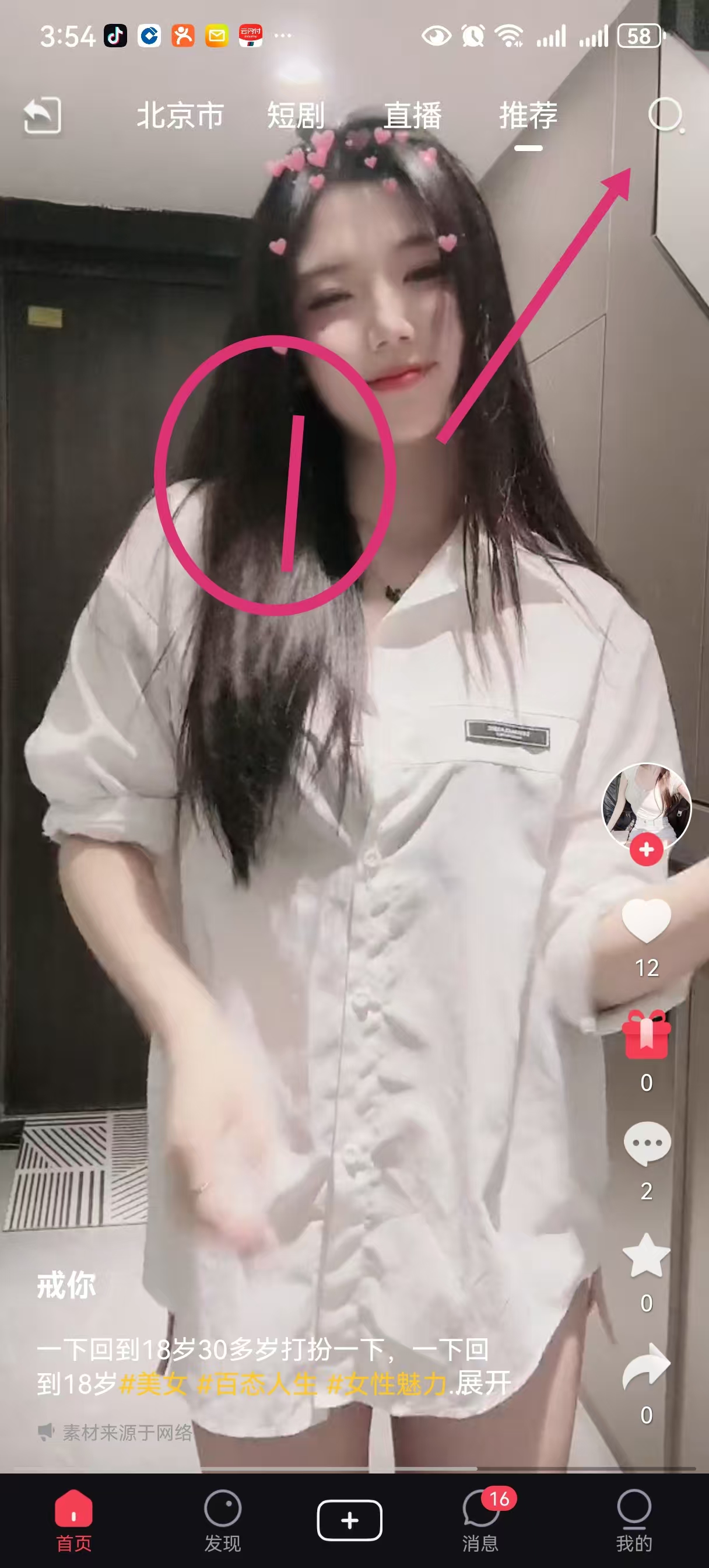 ①首页右上角搜我 id,选择用户 200582192