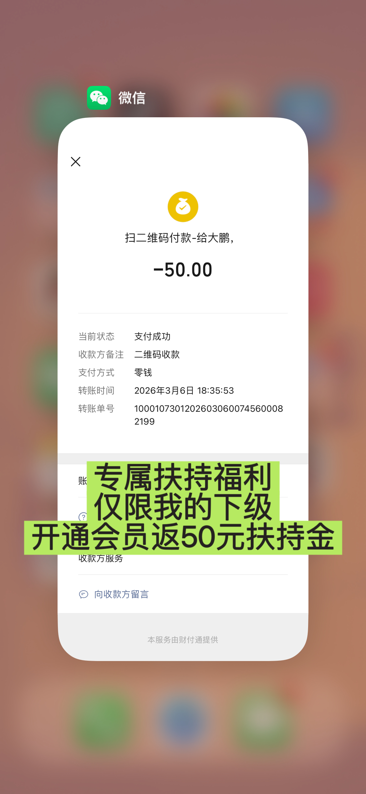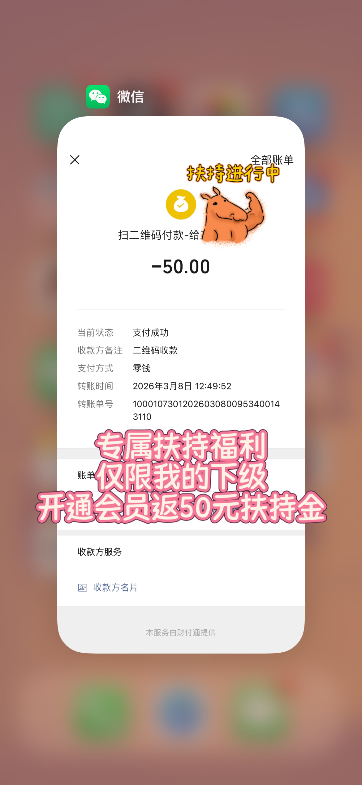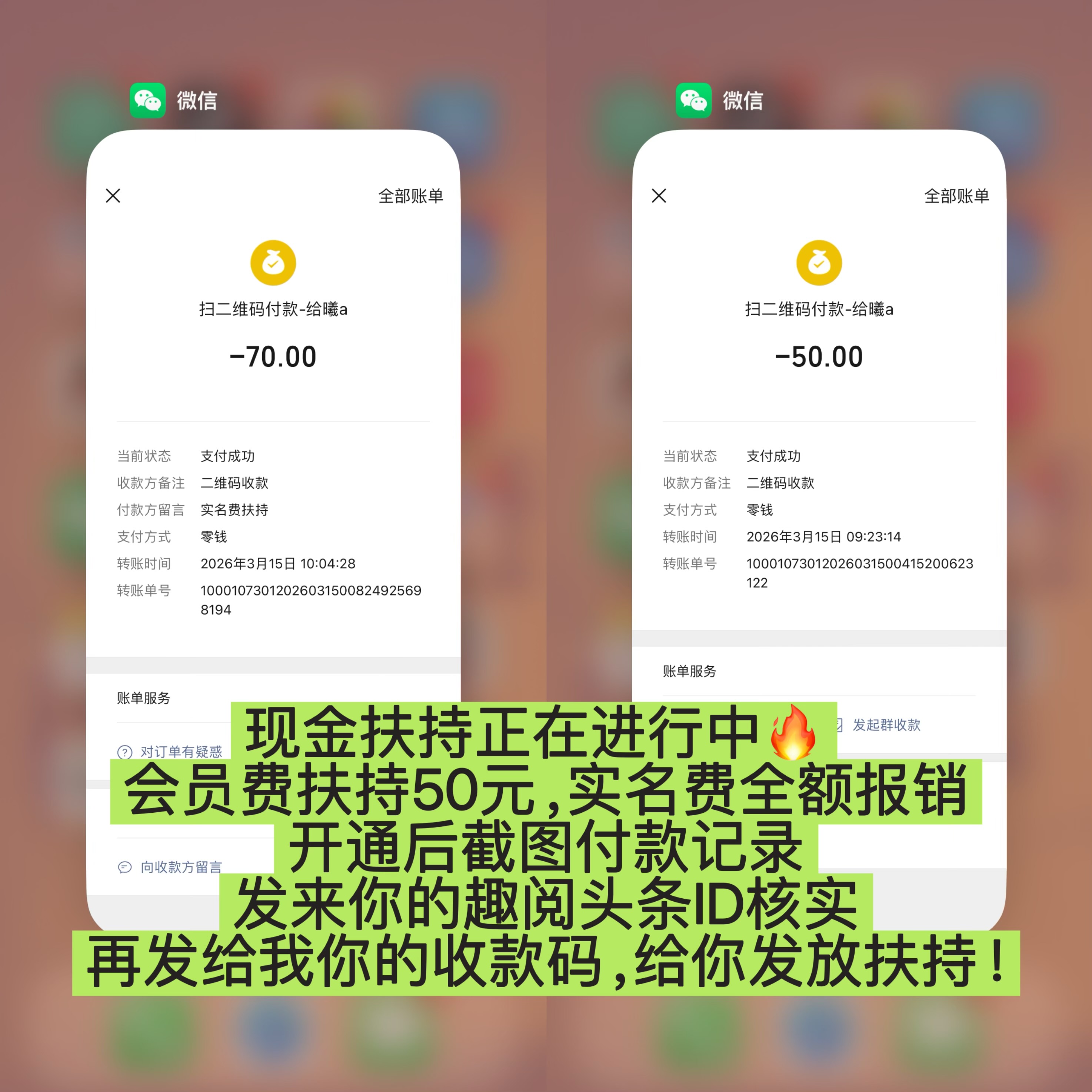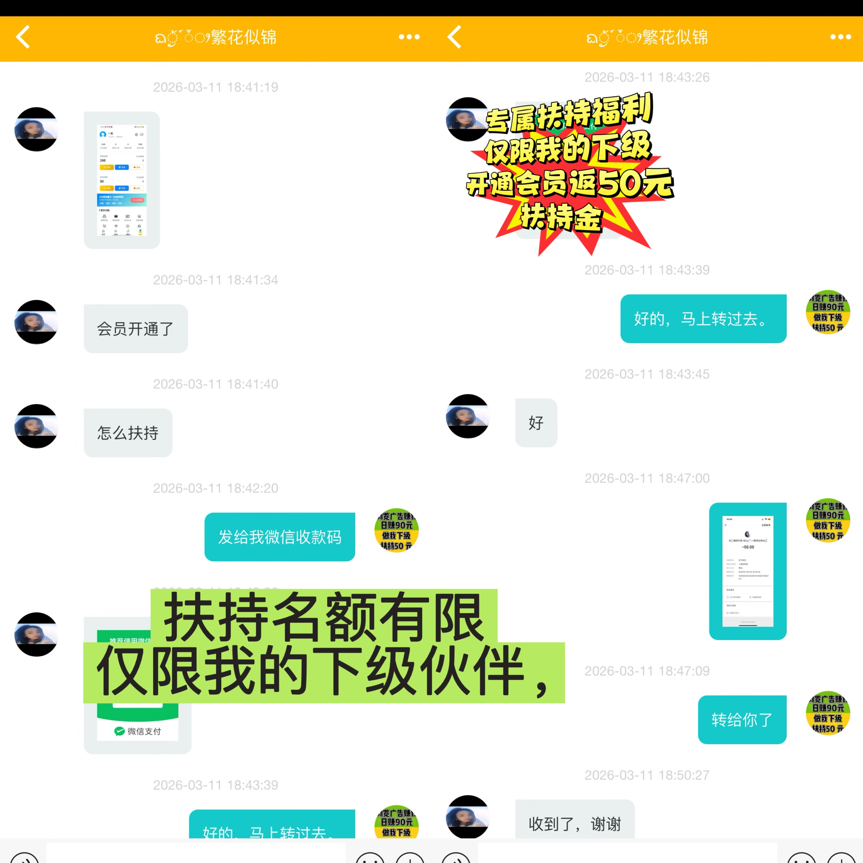 注册完成后,你可以添加我的联系方式,或者在App内私聊我。只要核实你是我直接推荐的伙伴,只要是我的下级,开通后截图付款记录+你的趣阅ID+收款码发给我,立刻返50元扶持金!名额有限,满额立刻停!