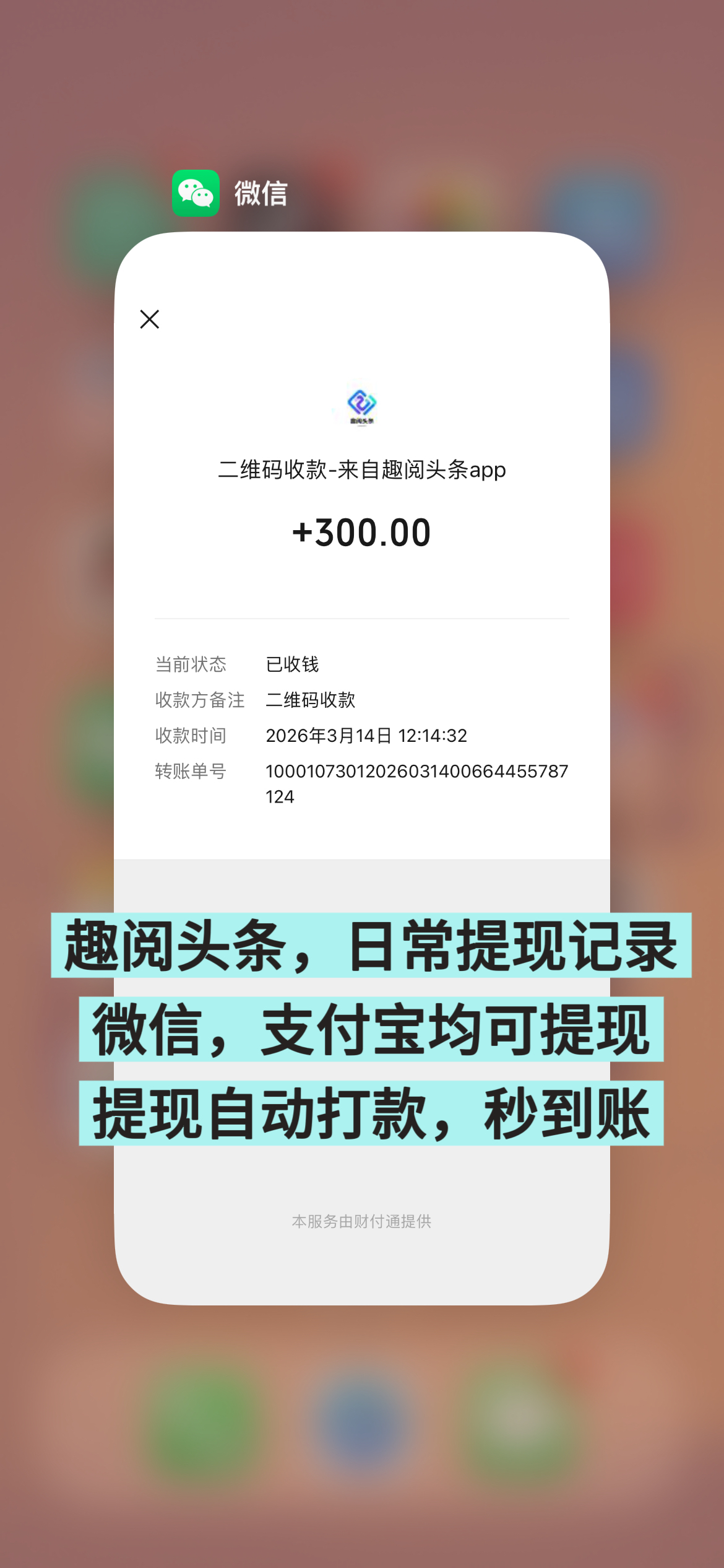 为保障用户收益及时兑现,趣阅头条配套便捷提现机制: