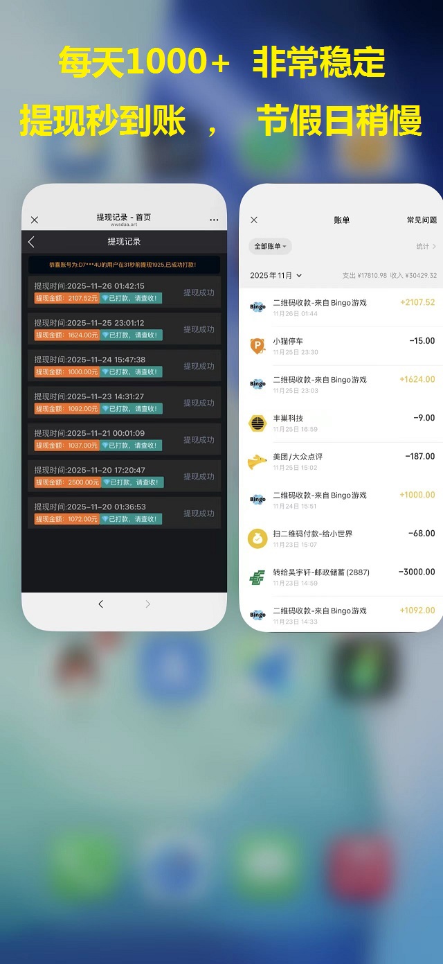 Bingo日赚1000以上 ,看我提现稳定到账截图,收益暴力 !