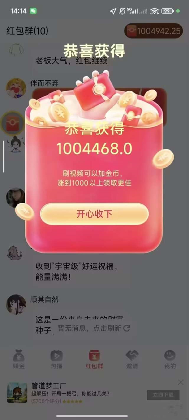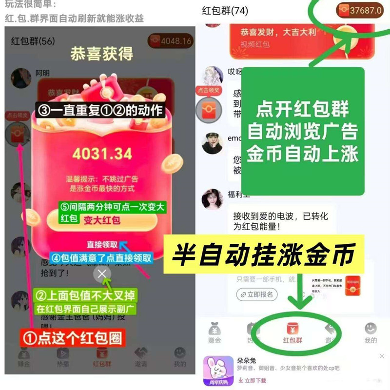 支持半自动挂机刷广告,[文]开启后停留在红包群界面[章],系统自动播放广告,金[来]币与红包持续累积。只需[自]保持屏幕常亮,无需手动[5]操作。每2-3分钟可领[1]取一次奖励,关闭后触发[8]插屏广告收益。金币获取[8]无上限,挂机期间随时看[项]广告即可领取,日收益可[目]达100-200米。