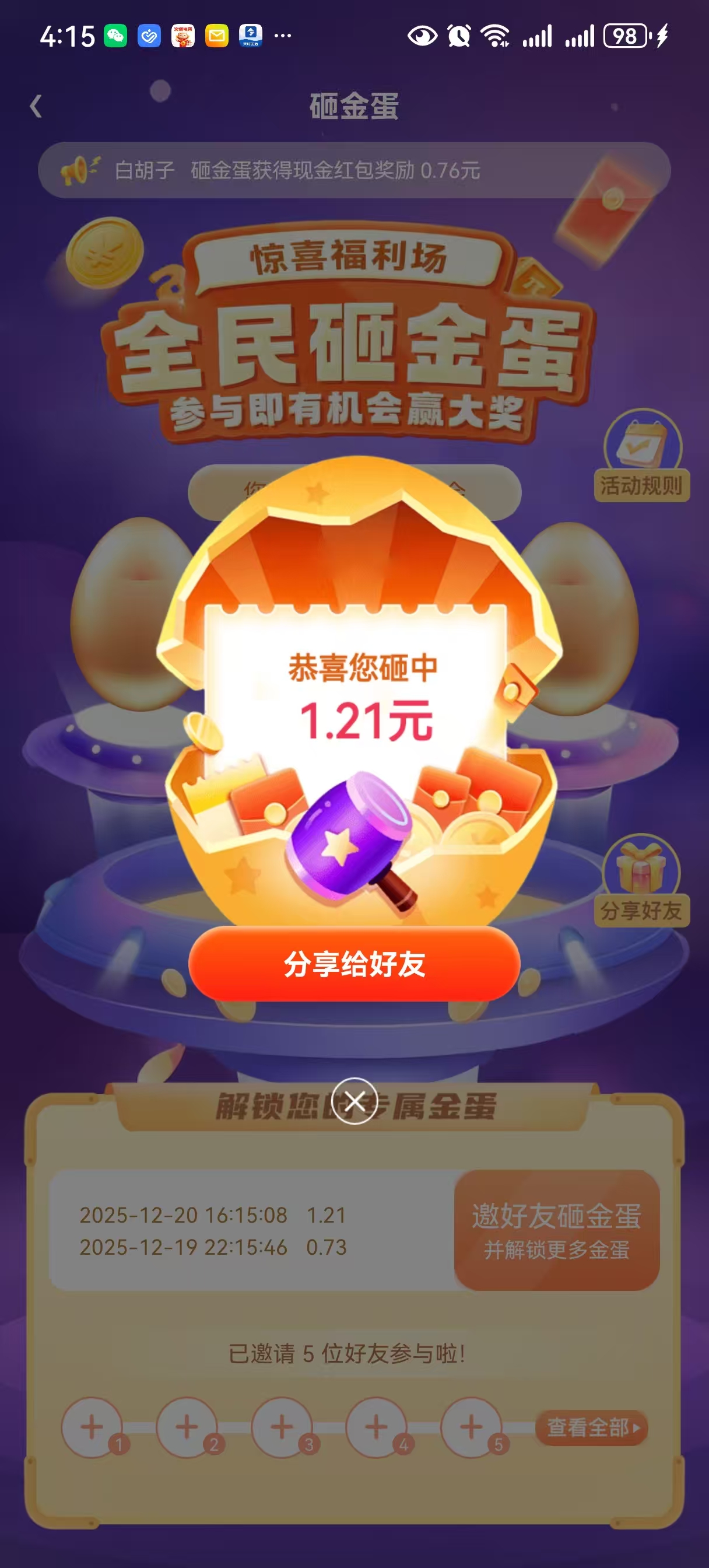 实名,参与活动里砸金蛋撸羊毛了,最少1.2米红包左右,直接提致富宝!