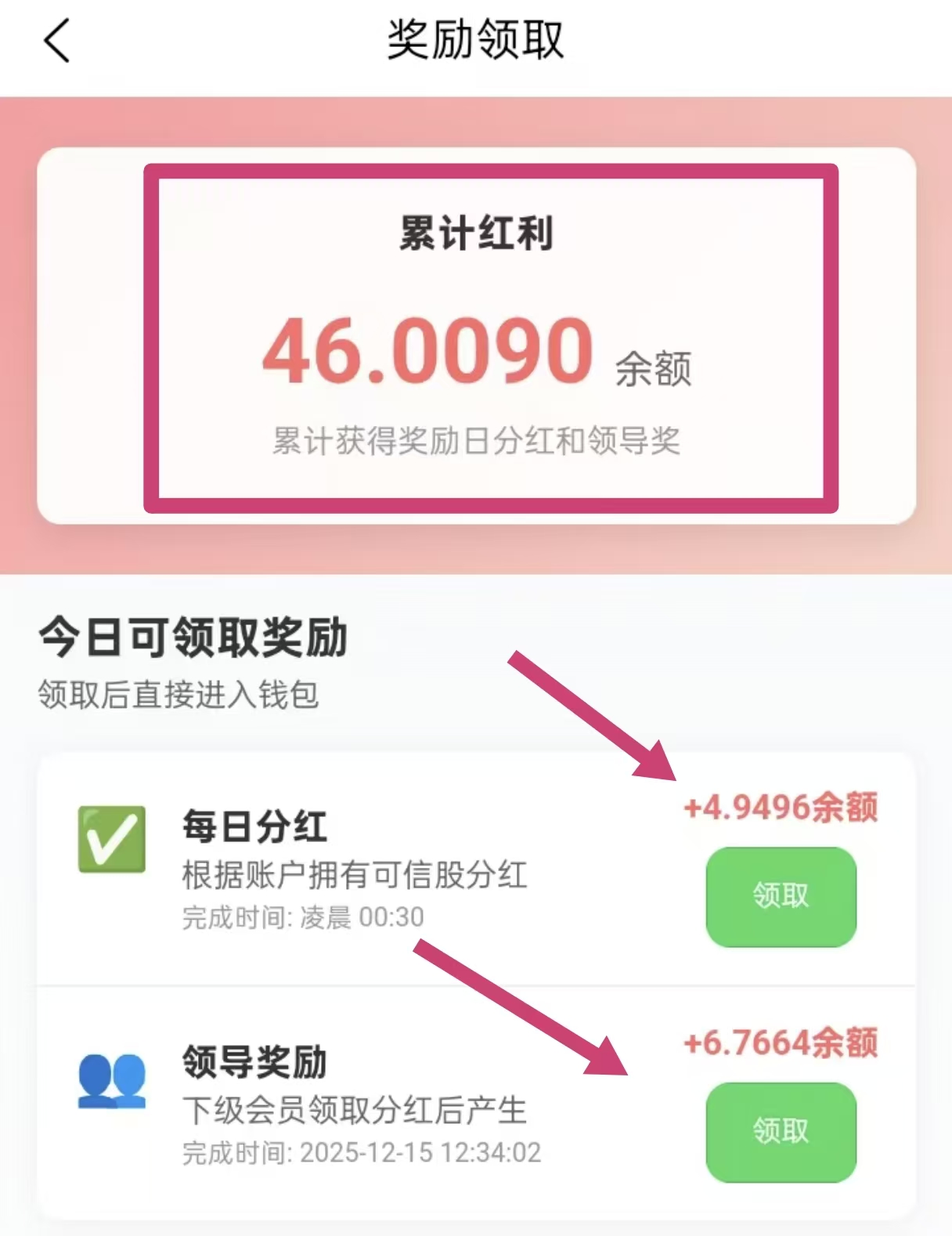 2️⃣兑换比例500信任分兑换1可信股,持可信股每日现金分红,持股每日芬红,芬红股案上涨计算