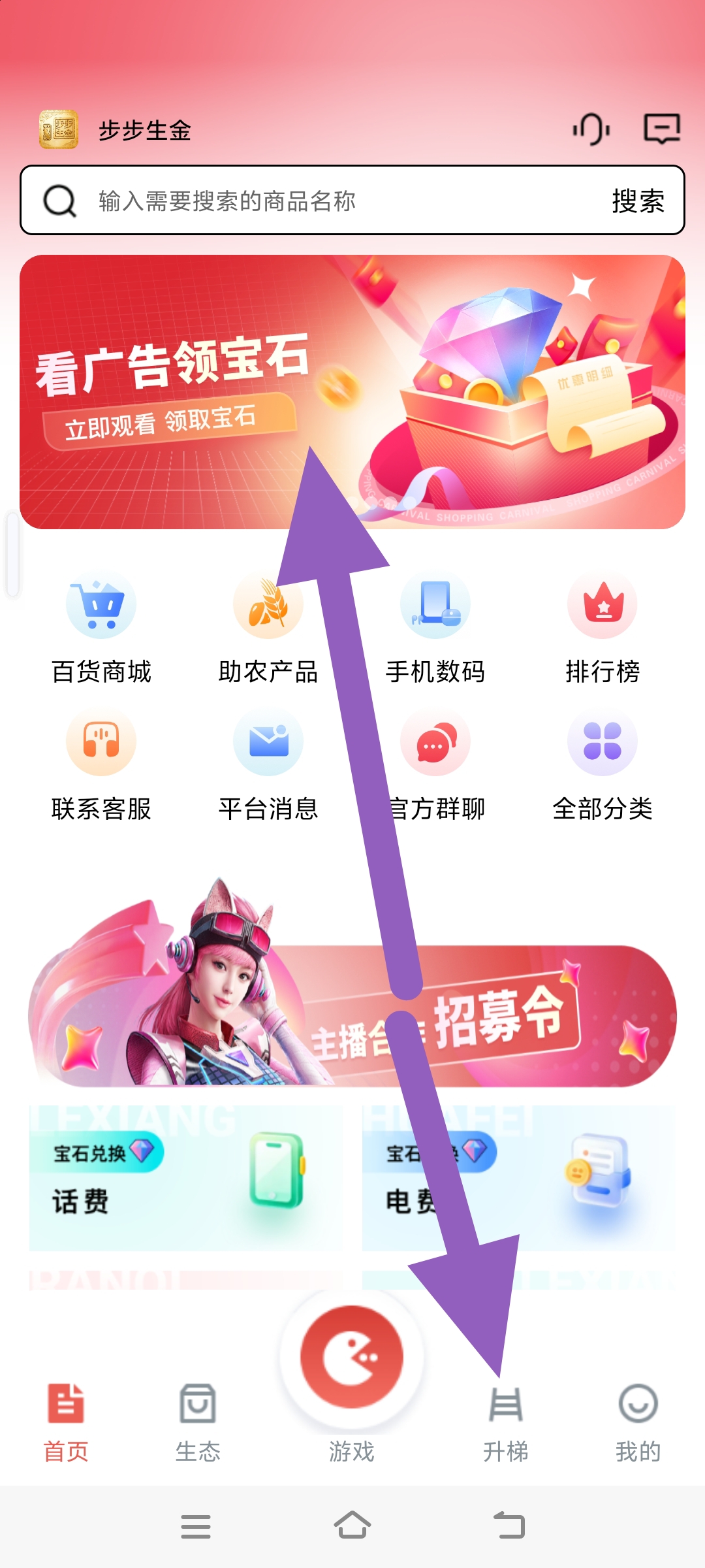 《首页每天看3个广告给1宝石,宝石可卖,可兑换话费,电费,天然气》每天看6个广告,爬梯,推广排行榜10天999元