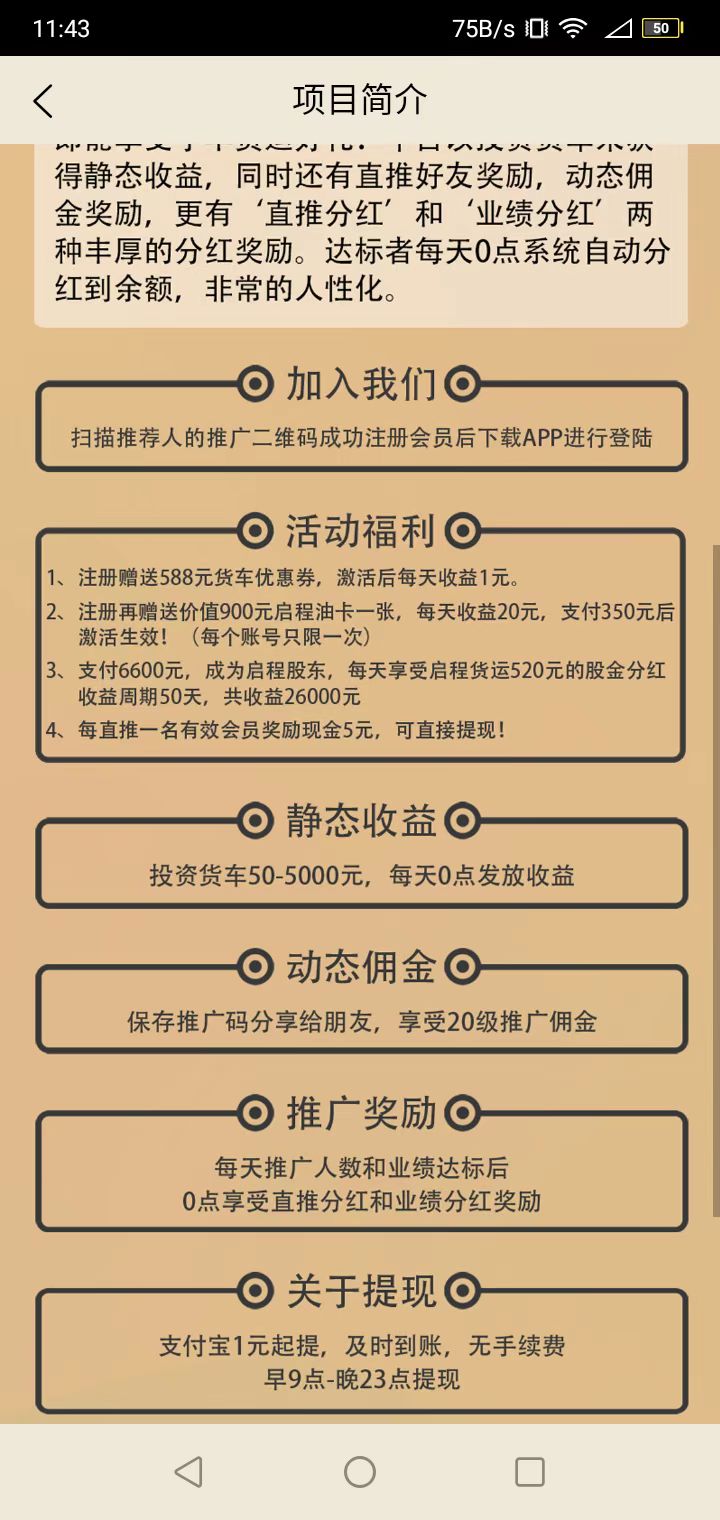 启程货运首码上线,新手送启程油卡一张,每天可收入20米,成为启程股东,每天享受启程货运520米的的股金分成,另外每推一位朋友加入,奖励现金5米+运输提成,所有收入1米起提,让每一位家人都满载而归,成果显著。