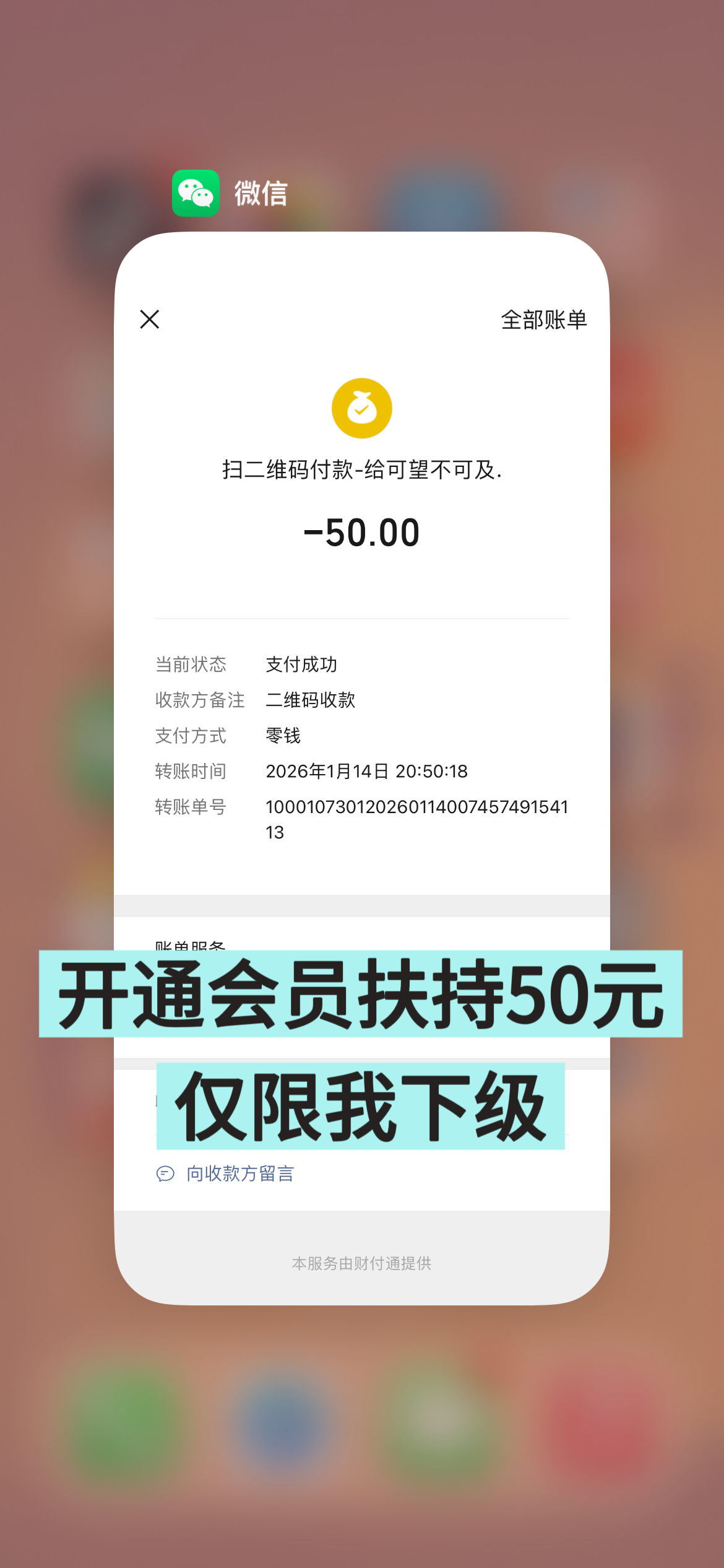 注册完成后,你可以添加我的联系方式,或者在App内私聊我。只要核实你是我直接推荐的伙伴,只要是我的下级,开通后截图付款记录+你的趣阅ID+收款码发给我,立刻返50元扶持金!名额有限,满额立刻停!