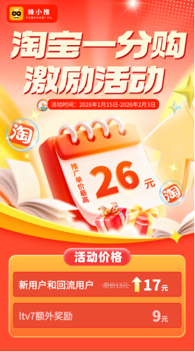 本次淘宝一分购推广激励活动的核心福利周期为1月15日至2月3日,当前已进入后半程冲刺。