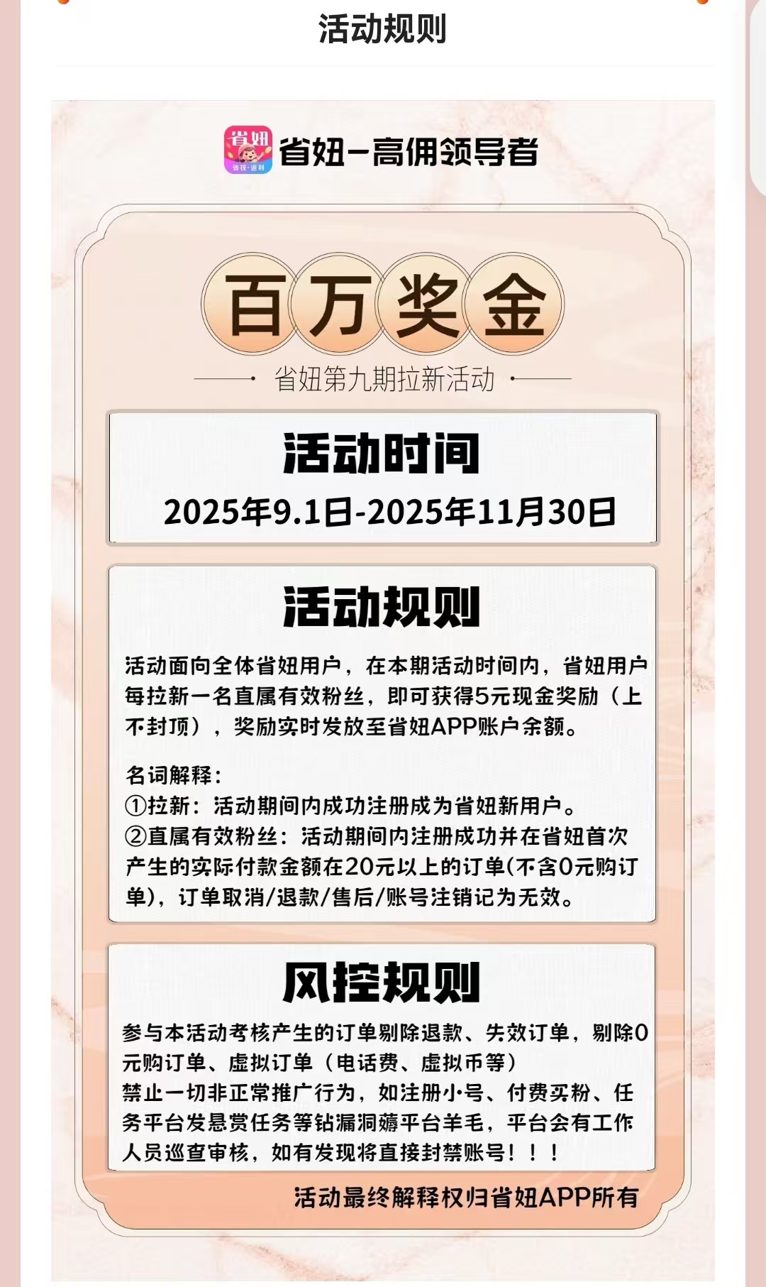 值得一提的是,省妞APP不仅能“自购省钱”,还能“分享赚钱”,零门槛、零投入,适合所有人当作副业增收,尤其适合学生党、宝妈、上班族。用户通过省妞APP分享商品链接、邀请好友注册,就能获得丰厚的佣金奖励:每邀请1个好友用官方邀请码55555注册,并完成首单,就能直接拿到5元现金奖励;好友后续每次通过省妞下单购物,你还能获得他订单返利的5%-10%,好友再邀请下级,你还能拿到团队总佣金的5%,无限代收益,躺着就能赚被动收入。有用户分享,仅靠分享邀请码、组建推广团队,每月被动收入就能达到上千元,甚至有学生党靠这招,实现了学费、生活费自理。
