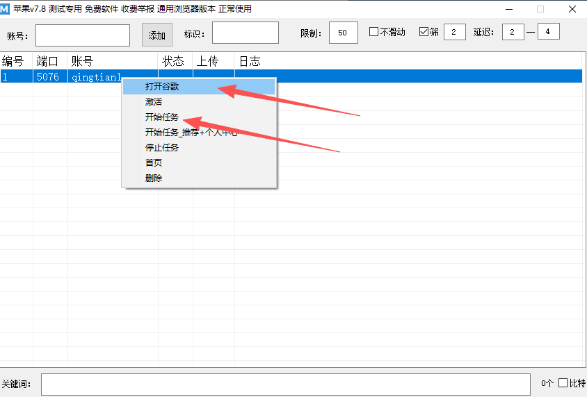 我们在搜索框随便输入一个品牌的名字!因为品牌的任务多,而且销量好然后我们点击开始任务,之后脚本就会自己去滑动商品,然后去寻找任务,上传任务,上传完成!一单就是做完了!全程不用我们自己去操作!