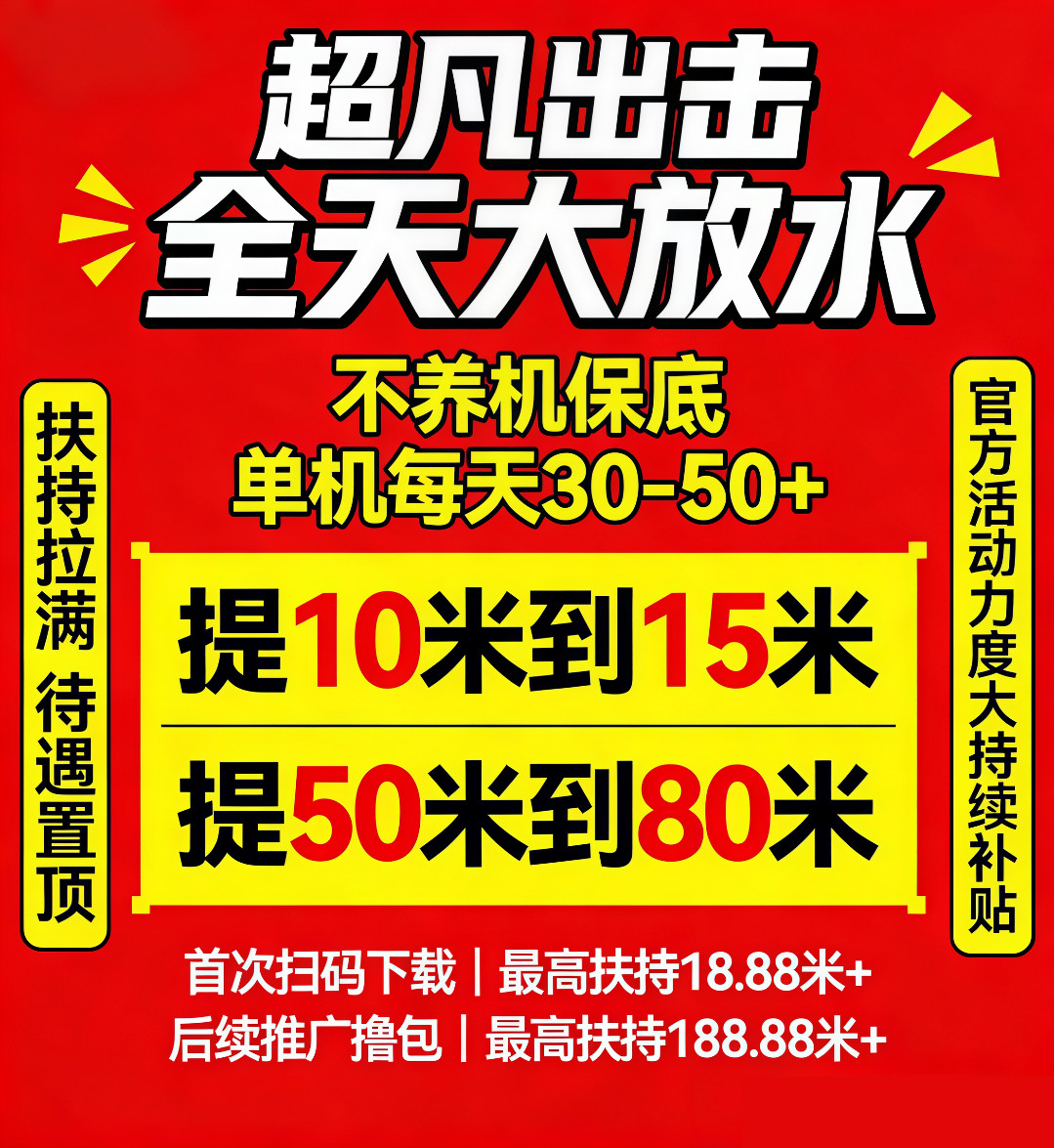 首码超凡出击广告赚钱项目,首次扫码下载立享高额扶持,不用养机也有保底收益,全天持续放水,邀请好友日入过百,单机日收益30-50+,附赠免养机操作教程,扶持力度拉满,待遇直接置顶!